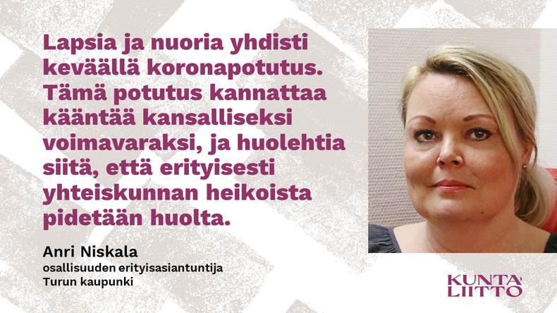 Syynä positiivisiin asioihin oli se, että lapsia ja nuoria yhdisti yhteinen koronapotutus. Tämä potutus kannattaa kääntää kansalliseksi voimavaraksi, ja huolehtia siitä, että erityisesti yhteiskunnan heikoista pidetään huolta.