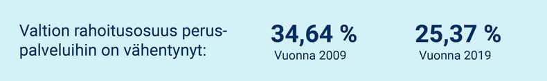 Kuntien peruspalveluiden yleistä valtionosuusjärjestelmää tarvitaan tulevaisuudessakin tasoittamaan kuntien kustannus- ja tuloeroja. Valtion tulee osallistua kuntien palveluiden rahoittamiseen perusrahoituksen tosiasiassa turvaavalla osuudella.