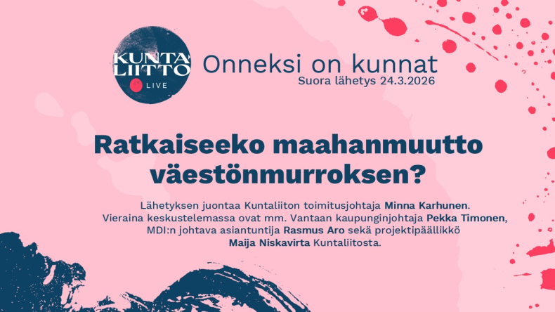 Onneksi on kunnat! -livelähetys pureutuu väestönmurroksen teemoihin ja pian alkavan parlamentaarisen kuntien tulevaisuustyön odotuksiin.