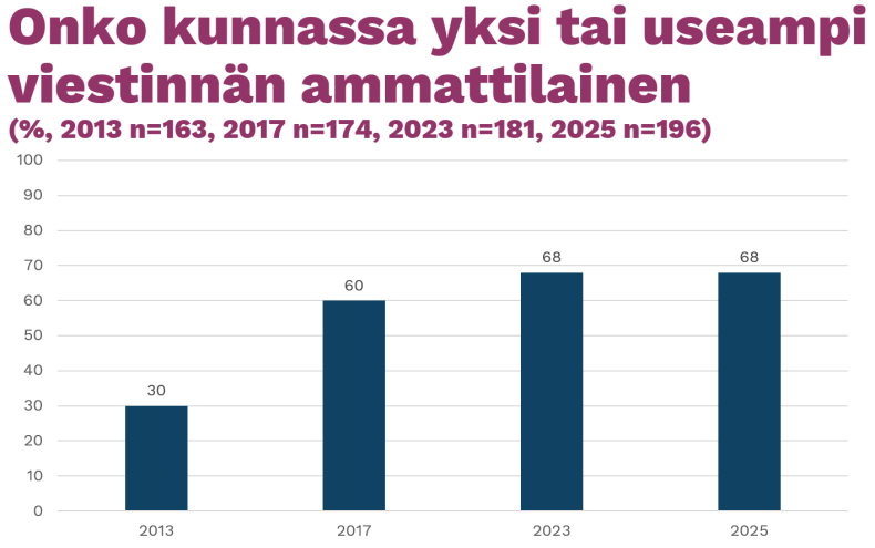 – Ammattimaisen ja laadukkaan viestinnän tärkeys korostuu, ei suinkaan vähene, nopeasti muuttuvassa ja monikanavaisessa maailmassa. Hyvin hoidettu viestintä rakentaa luottamusta, vahvistaa turvallisuutta ja tukee kunnan mainetta sekä vetovoimaa. Se ei ole pelkkä kustannus, vaan investointi kunnan toimintakykyyn ja yhteisön hyvinvointiin, Kaukopuro-Klemetti toteaa.